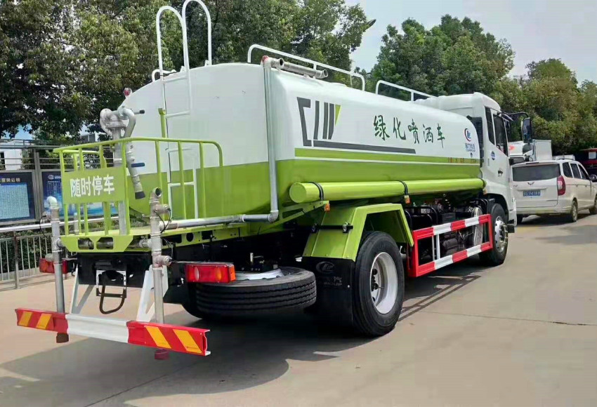 防護材料:Q235A碳鋼,,罐體采用4mm鋼板,前后封頭5mm鋼板,連接方式:左右側面采用焊接連接,后下部防護采用螺栓連接。罐體內雙層隔板具有防波蕩作用,以減輕汽車行駛時罐內液體沖擊。裝配大功率專用灑水泵,前沖、后灑、側噴、后平臺帶綠化灑水炮,灑水炮可全方位旋轉,可連續調成直沖狀、大雨、小雨、毛毛雨;配消防接口,自流閥,濾網,帶自吸自排功能。前封頭帶水位計,后平臺主管路帶1寸澆花接口,后爬梯,帶1個消防接頭,帶1個自流閥,1個過濾裝置,其余標配